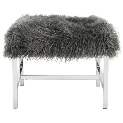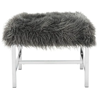 Lush and luxuriant, the Horcae Faux Sheepskin Square Bench elevates any interior living area. Outfitted in polished metallic touches and neutral bold faux curly sheepskin, it is ideally used as extra seating in the living room, at the end of the bed in an opulent boudoir or in a glamourous walk-in closet. A fashionable addition to any space, the Horace Faux Lamb Square Bench is available in multiple colors to best suit your personal tastes and decor.
