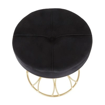 With a stunning silhouette, the Jasmine Vanity Stool by LumiSource offers style and practicality. Resting on a sleek and intricate gold metal base the button-tufted seat is upholstered in a stylish velvet. Use it for extra seating or as a stool for a vanity. Available in your choice of multiplecolor options, you can use this glamorous vanity stool in a variety of spaces.