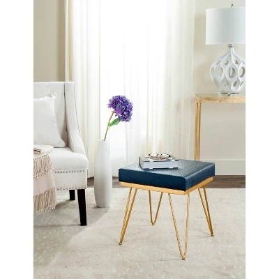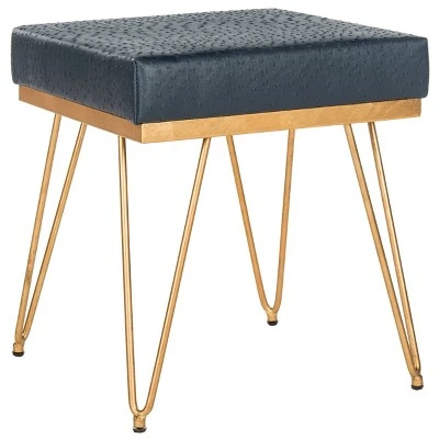 Coveted auction lots from the residence of one of the Upper East Side’s famous socialites inspired this posh square bench. Its modern gold metallic finish and geometric legs complement its rich navy upholstery. Ideal for seating or a tray of canapés. Constructed from Plywood and nickel, this trendy bench is able to support up to two hundred and seventy five pounds. The Jenine Faux Ostrich square bench is the perfect choice for Contemporary, Glam, Mid-Century or Modern style interiors.