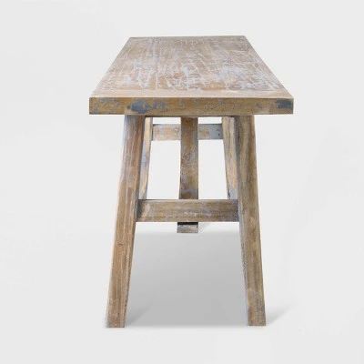 Scoring high on style, the Jerome Rubberwood Bench from East at Main brings a functional piece to your living space. Featuring a sleek design with a weathered wood finish, this indoor bench fills your space with eye-catching, rustic appeal. Whether you decorate it with succulents and decorative vases and display it in your entryway or place it in your living room to add additional seating space for your guests, this wooden bench will bring versatility to your interiors.