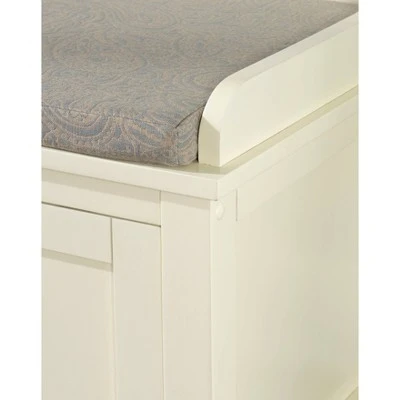 The Lakeville Storage Bench is perfect for adding storage and seating to an entry or hall. The bench provides ample bottom storage space for shoes, books and toys. Sliding doors keep your items hidden from sight. The white finish is an easy addition to any space. A plush cushion adds comfort to the seat.