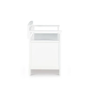Create added seating and storage to your foyer or mudroom with this attractive and functional Laredo Storage Bench. The bench features a flip top lid, allowing the user to easily retrieve articles from the storage compartment. The ladderback design and decorative front are enhanced by the white finish. A stylish and functional addition to any home.