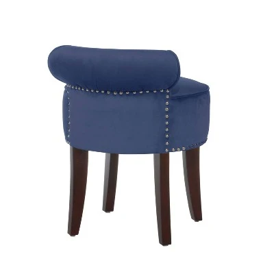 - Product Name: Lena Backless Wood and Upholstered Vanity Stool with Nail Head Detailing