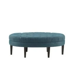 Incorporating a mid-century modern design into a practical household essential, this Faux-Leather Button-Tufted Ottoman is a must-have for keeping your space nice and organized. For easy access to a variety of items you frequently use on a daily basis, this round storage ottoman features a lift-off top for stowing anything from blankets and pillows to shoes and umbrellas. The single button tuft brings a sense of classic elegance, while the raised, tapered legs add a hint of mid-century modern charm. Place it beside the sofa in your living room for a comfortable place to kick your feet up, or use it in your home office as a decorative accent piece.