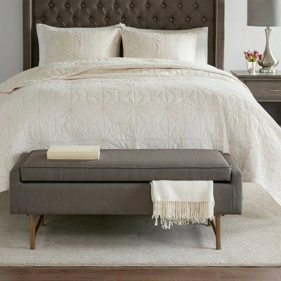 Complete your living room or bedroom with the Sunnycrest Accent Bench. Upholstered in a rich gray fabric, this accent bench features bronze metal legs that create an elegant contrasting look. Incorporate this accent bench into your home decor to give your space a simple, yet handsome allure. Assembly required and no tools needed.