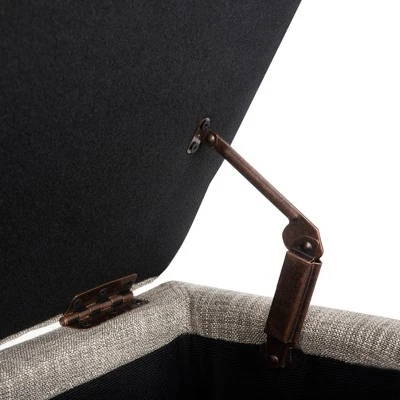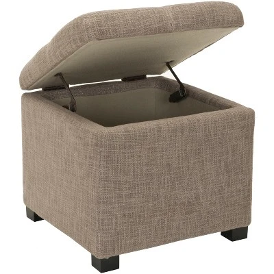 The Madison Square Ottoman is the star of the living room, family room, or den. Crafted with a soft stone viscose blend fabric and birch wood legs in a black finish, its hinged top conceals your miscellany with ease, while its cushioned top offers seating for that extra friend of a friend. Care Instructions: To prevent overall soiling, frequent vacuuming or light brushing is recommended. Cushions and pillows should be turned on a weekly basis. Down filled cushions should be brushed rather than vacuumed. Spot clean, using a mild water free solvent or dry cleaning product. Only a professional cleaner should undertake a complete overall cleaning. The use of steam or water based cleaners may cause excessive shrinking or staining.