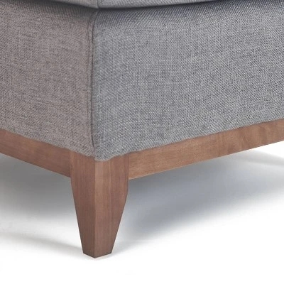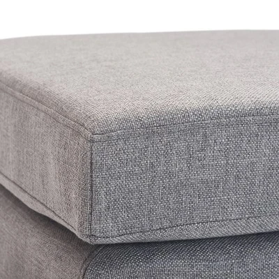 Create a stylish and functional accent to your living or family room with this convenient and comfy ottoman. The contemporary design is a sleek addition to your modern decor. Neutral toned upholstery works will in any room, and is easy to clean and maintain. You’ll love the way the warm, inviting exposed wood base and legs create a visual accent in your room. This modern ottoman is the perfect rest for your feet and a tray of snacks at the end of the day.
