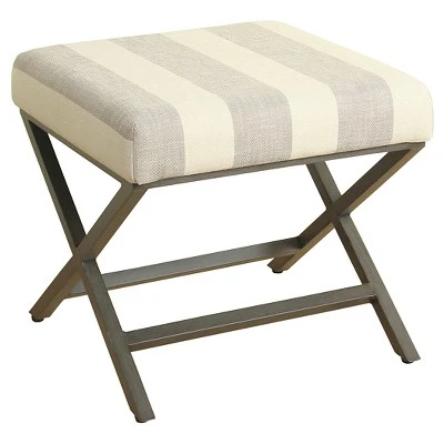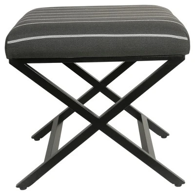 This modern industrial ottoman will update any space. Its upholstered cushion tops a finished metal base. Use it to complement an accent chair in a living room, to provide extra seating in a family room or pair two together at the end of a bed. This square ottoman works well in a smaller space and will blend with a variety of styles. Easy to assemble and maintain with spot cleaning as needed. This ottoman can support up to 250 pounds.