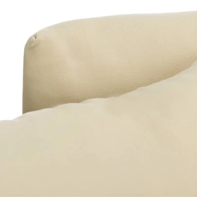 Sit down, relax and unwind in this cozy and comfortable wooden teak two seat bench. Designed with comfort and style in mind, this loveseat has sleek contemporary geometric arms and generous off-white upholstery. The fluffy cushions and pillows provided makes this seater a great lounging piece for a room. Use them in pairs for an instant outdoor conversation area for relaxing chats. Its natural wood construction makes it an investment piece and will not fail to impress.