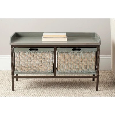 The Noah Storage Bench is a welcome addition to any entry hall, mud room, or family room. Noah’s French grey seat is perfect for removing rain boots or shoes after a long day, and two wicker style baskets tucked in an intricately detailed antique pewter frame offer discrete yet stylish storage. Care Instructions: Dust regularly with a soft, dry cloth. Never use oiled or treated cloths on lacquered finishes. Some finishes can be wiped with a damp (not wet) cloth, followed at once by rubbing with a dry cloth to remove fingerprints and smudges. For persistent spots, gently clean with a soft cloth and a solution of water and mild soap, make sure to wipe dry. Use adhesive felt pads, coasters and placemats to protect your furniture.
