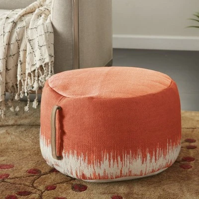 Made from cotton on a round silhouette, this Mina Victory pouf is an instant staple during relaxation time. In true contemporary fashion, its color melts into a jagged linear motif in soft ivory. Dense polyester and polystyrene beads fill the interior of this pouf for sturdy support as a seat, or as place to prop up your feet after a long day. Includes a brown cloth side handle for convenient carrying from room to room. Size: 20-in (L) x 20-in (W) x 12-in (H).