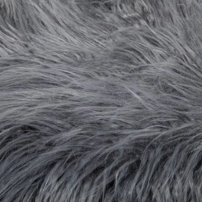 - Faux fur bench features a fluffy gray fur seat and polished black metal legs
