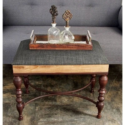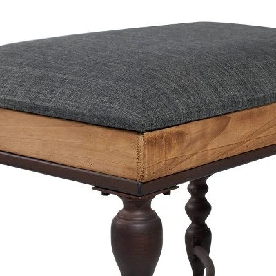 - This farmhouse style stool is made from iron, wood, and fabric materials