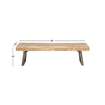 This wooden bench seat has a simple design that can be amplified by cushion pillows and woven fabric. So take a load off and relax on this decorative bench. A small piece of furniture that make a big difference to give your home an instance refresh. This item comes shipped in one carton. Suitable for indoor use only. Some assembly required. Made in India. Industrial theme. Maximum weight limit is 400 lbs