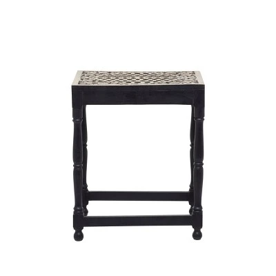 - This versatile set of stool accent tables feature a rectangular structure designed with flourish patterned carvings and rounded feet