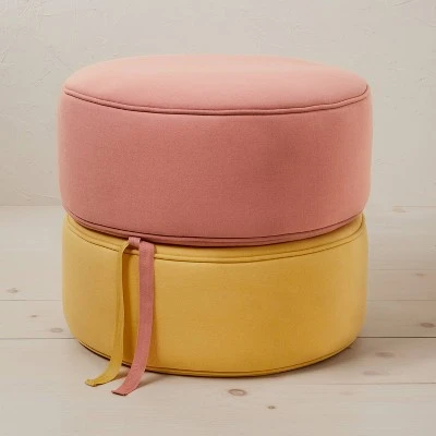 Round out your reading nook or any other area in absolute comfort and style with this Appenine Linen Stacking Pouf from Opalhouse™ designed with Jungalow™. This decorative round ottoman features a rounded, pouf-style design wrapped up in soft solid fabric upholstery for added style. Plus, the stackable pouf features a tie cord attached to each piece that can be tied to create comfy seating. Stuffed with super-soft foam filling for extra comfort and support, this upholstered pouf works great as a comfy footrest or as an additional seating option in your living room.