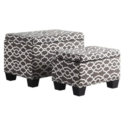 Everyone can relax in style with the Storage Ottoman Set from Ore International. This ottoman set includes two rectangle ottomans, one slightly smaller than the other, letting you create a coordinated and complete look in your living space or den. Use the storage compartment to hold blankets, games, magazines or anything you like to keep within reach while you relax.