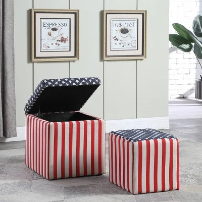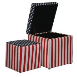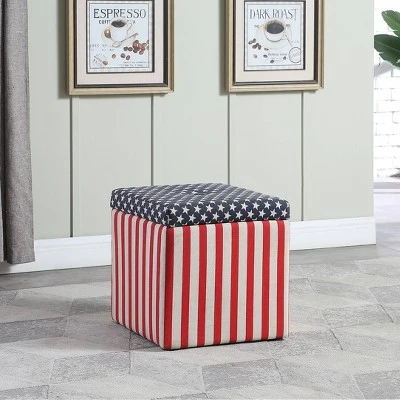 Add some flair to your home with this glamorous patriotic storage ottoman. Perfect everywhere from the living room to the kid’s room, the added storage and decorative accent are sure to make an impression. Complete with an emulated fur texture, this storage ottoman has a lid that lifts to reveal a spacious storage compartment.