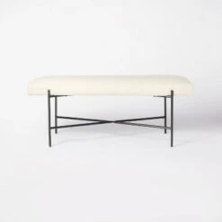 The Perry Rattan Woven Bench from Threshold™ is the perfect combination of sleek geometric lines and natural textures. Seating up to two people comfortably, this backless bench features a woven rattan seat in cream, and it stands atop six legs and a trestle base in light brown for a beautiful pop of contrast. Wraparound accents in a complementing cream on the light brown frame add extra visual interest, and its lightweight and transitional design works in most decor schemes while adding a breezy, decorative element to any room. Place this versatile woven accent bench by your front door to easily put on or take off your shoes, or use it as additional seating in the living room and accent it with cozy pillows.