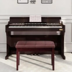 Costway Solid Wood PU Leather Piano Bench Padded Double Duet Keyboard Seat Storage Brown
