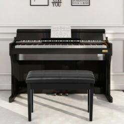 Costway Solid Wood PU Leather Piano Bench Padded Double Duet Keyboard Seat Storage Black