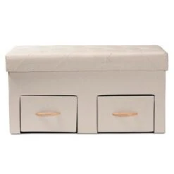 Gerwin Wood 2 Drawer Storage Ottoman – Baxton Studio Beige/oak Brown