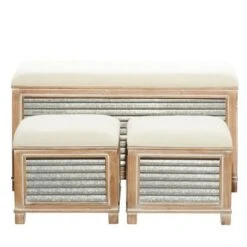 Olivia & May Set of 3 Farmhouse Storage Benches with Cushioned Seats Light Brown – Olivia & May