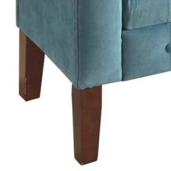 Velvet Upholstered Button Tufted Wooden Bench Settee with Hinged Storage Blue/Brown – Benzara