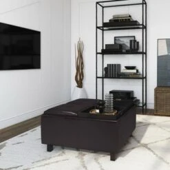 Karis Square Coffee Table Storage Ottoman Tanners Brown – WyndenHall