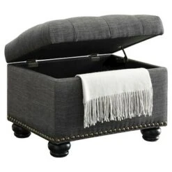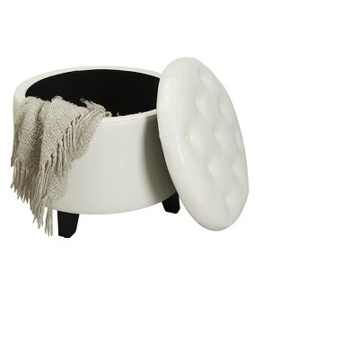 Make a bold statement with the Designs4Comfort Round Ottoman by Breighton Home. This transitional ottoman features a removable lid that provides easy access to concealed storage within the ottoman. A stylish tufted top makes a very comfortable conversation piece that can be used as additional seating or make a great place to rest your feet! Available in multiple finishes.