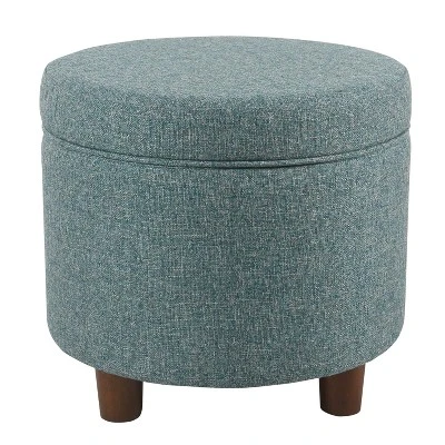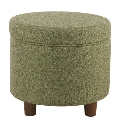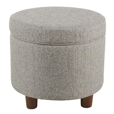Refresh any space with the charming mid-century modern style of this Round Storage Ottoman from HomePop. Upholstered in a textured tweed fabric, this round ottoman features a lift-off lid that reveals convenient storage. It’s perfect to store books or magazines in your living room, to keep remotes and controllers nearby but out of sight in your family room or as a decorative way to store extra throw blankets and pillows in your entryway.