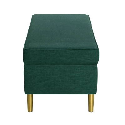 Include this delightful dual-purpose storage bench in any room design when you need somewhere to stash extra blankets and other useful extras. The top offers a hinged lid, and the entire piece is skillfully hand upholstered in durable fabric – atop metal legs. Made to order in Illinois, you’ll find it as useful as it is pleasing to look at! Our transitional design makes this piece a go-to pick for nearly any room in the home.