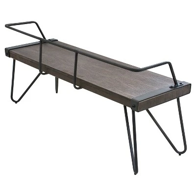 The innovative LumiSource Stefani Bench features a wood seat supported by a metal frame featuring distinctive flared hairpin legs. The Stefani Bench is available in gray wood and white metal or walnut wood and antique metal. Great for use as a bedroom, dining, or entryway bench. Whether in an urban loft, or a country kitchen, this bench will be a welcome addition to your decor.