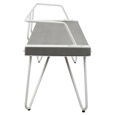 The innovative LumiSource Stefani Bench features a wood seat supported by a metal frame featuring distinctive flared hairpin legs. The Stefani Bench is available in gray wood and white metal or walnut wood and antique metal. Great for use as a bedroom, dining, or entryway bench. Whether in an urban loft, or a country kitchen, this bench will be a welcome addition to your decor.