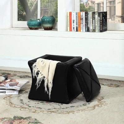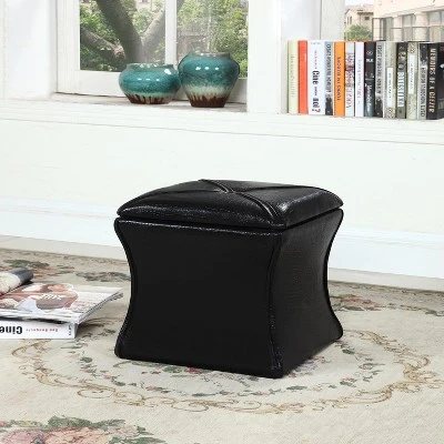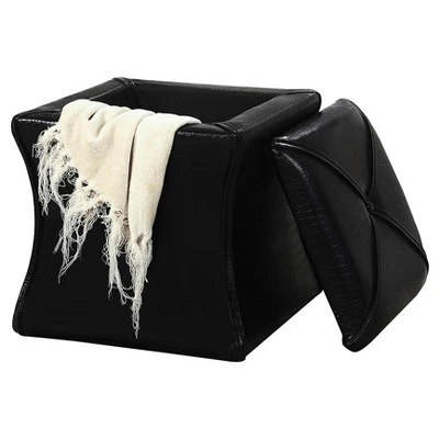 Kick up your feet and your decor with the Tufted Square PU Leather Ottoman with extra storage. This Jet Black ottoman features a Crocodile design and high density foam filling that makes it comfortable and lightweight. Its handsome croc pattern adds an eye catching accent to any room. Neutral Color that match your living space decor. Storage Bin has a good size storage for books, magazine for organization.