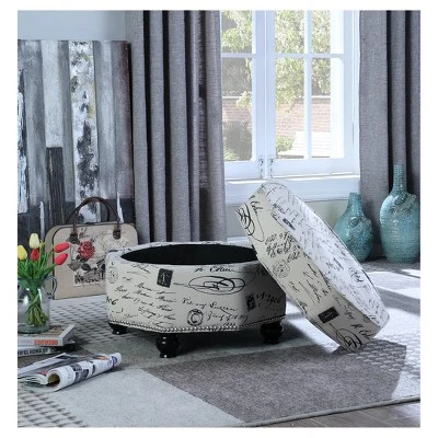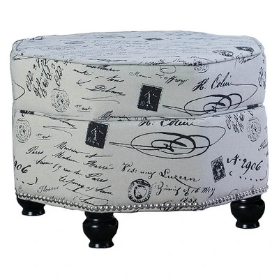 For the right mix of comfort and function, add the Storage Ottoman with Legs from Ore International to your space. This octagon ottoman is covered with a linen upholstery for a polished but inviting look. The silver nailhead trim along the base keeps the style chic whether you set up this ottoman in the living room, den or home office. Stash pillows and blankets in the storage compartment to keep your space orderly.