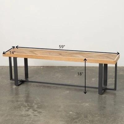 Rustic wood and simple modern metal legs combine to create this modern-styled bench. An inch shy of 5 feet in length, this furniture compliments any decor, making it the ideal addition in any room. Over the last 52 years, Sullivans has become an industry leader in home decorations. Our brand is rooted in tradition while incorporating modernized trends to keep your home looking up to date with timeless style. Here at Sullivans, we pride ourselves on creating product designs focused on quality and value, ensuring that our customers have access to beautiful products at reasonable price points.