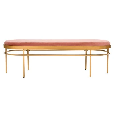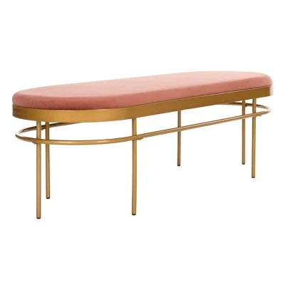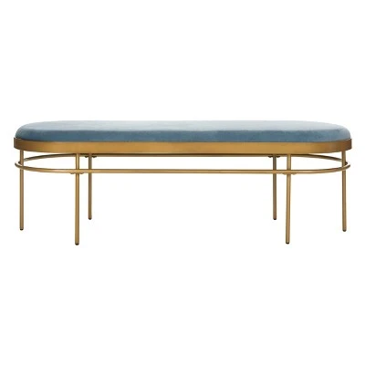 Transform any living room with this luxurious contemporary oval bench. Inspired by the glamour of vintage Italian design, its plush richly colored velvet upholstery complements its dramatic gold metallic finish. The Sylva Oval Bench is available in multiple colors to best suit your personal tastes and decor. It is a great addition for modern, contemporary, and glamorous interiors.