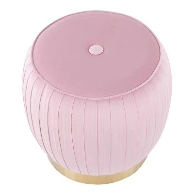 Fabulous and chic perfectly describes the Tania Ottoman by LumiSource. This glamourous ottoman features a padded pillowy top, pleated detailing, gold-finished base, and luxurious velvet upholstery in your choice of available color options. Pair it with your vanity, set it in your living room, or any area you might need an extra seat. Make this stylish ottoman a part of your living area or powder room today!