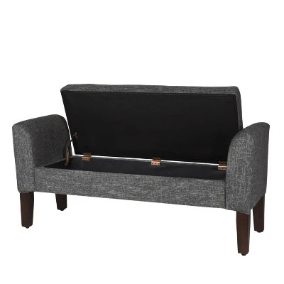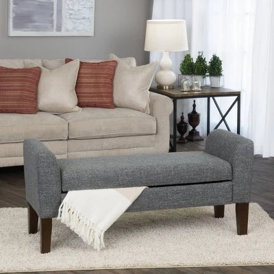 This storage settee bench is the perfect addition to your home to add extra seating in your living room, or for a great spot to sit and tie your shoes in your entryway. The hinged seat opens to reveal storage suitable for spare throws or pillows, books, magazines or toys. The textured fabric of this bench offers an elevated design, making this piece the perfect addition to your home. Easy to assemble and maintain, simply spot or wipe clean as needed. This storage bench can support up to 250 pounds.