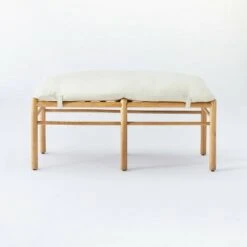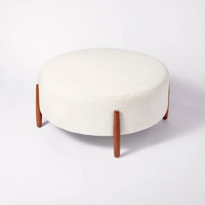 Threshold Designed W/Studio McGee Elroy Sherpa Round Cocktail Ottoman with Wood Legs Cream – Threshold™ designed with Studio McGee