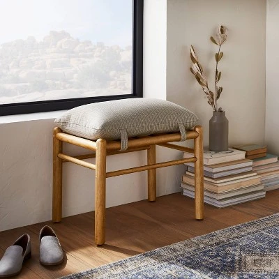Bring a little versatility and style to your home with the Emery Wood and Upholstered Ottoman with Straps from Threshold™ designed with Studio McGee. This cute accent seat features a wooden frame with upholstered pillow for a look that’s perfect for your living room, reading nook or other space. The frame is crafted from wood for an authentic look and feel, while the pillow is made from strong fabric with a cozy fill for comfort. Perfect as additional seating or as a footrest, this wooden bench with attachable pillow is a convenient and stylish upgrade you’ll love.