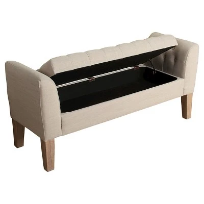 Designed as a part of the Kate collection to be a decorative settee or a functional storage bench. Premium details include allover button tufting, rich linen woven fabric, and wood legs with white washed finish. Available in soft, sophisticated colors. You’ll love the added storage option at your entryway, living room or foot of your bed. Matching Kate Accent Chair also available. Easy to assemble and maintain, spot or wipe clean as needed. This settee bench can support up to 250 pounds.