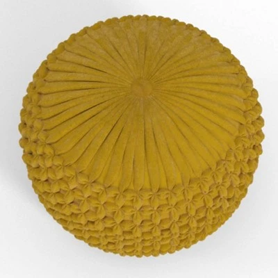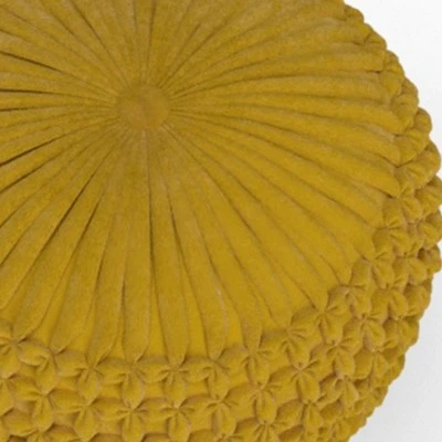 - Versatile round shape featuring a button tufted pleated top and unique tufted detail sides