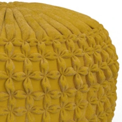 Upholstered in velvet, Vanessa Round Pouf is soft to the touch and comfortable to sit on. Its distinctive detailed design and beautiful rich color adds elegant style to any décor. Beautiful and functional this pouf can be used as an ottoman, an accent piece or casual seating.