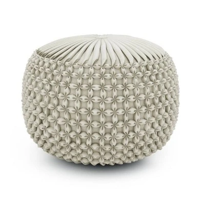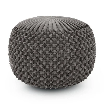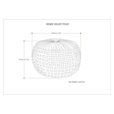Upholstered in velvet, Vanessa Round Pouf is soft to the touch and comfortable to sit on. Its distinctive detailed design and beautiful rich color adds elegant style to any décor. Beautiful and functional this pouf can be used as an ottoman, an accent piece or casual seating.Efforts are made to reproduce accurate colors, variations in color may occur due to computer monitor and photography.