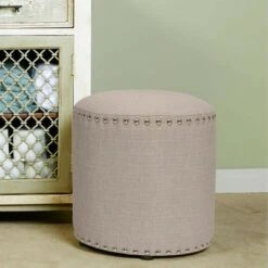 18.5" Laura Round Backless Upholstered Vanity Stool Light Linen Gray – Hillsdale Furniture