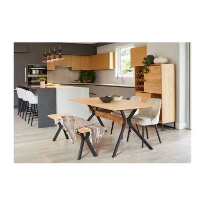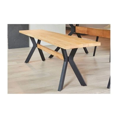 The Willacoochee Bench is the ultimate seating for your family. Complete with an expansive oak face and strong steel legs, this piece of furniture will last through countless meals and occasions. Its warm wood and dark metal combo is perfect for the modern rustic home.