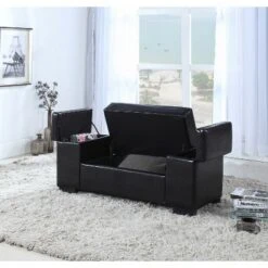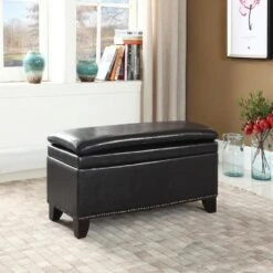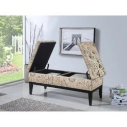 This contemporary and stylish storage bench is designed to adapt to any room while providing additional seating room for you and your guest. With the conveniently hidden storage space making this bench quite practical for holding books and magazines, up to 3 cubic feet (27″ x 15″ x 12″). The seat flap is designed for easy opening or securely sleek and tight closing when needed. The bench is finished with dark brown leather seat cushion compliments with wavy patterned brown velvet for a modern decor feel. The sturdy internal frame is supported with metal and wood. Minimal assembly required